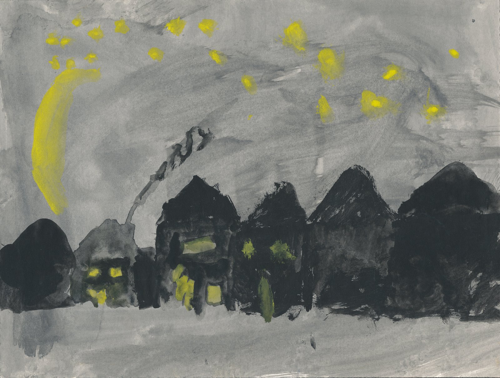 Häuser bei Nacht (September 1975, fast 8 Jahre, 2. Schuljahr)