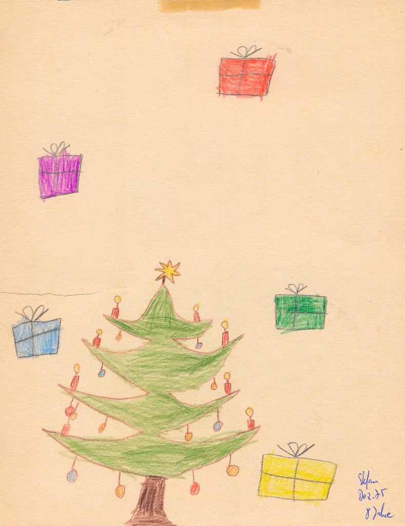 Weihnachtsbaum mit Geschenken (Dezember 1975, 8 Jahre)