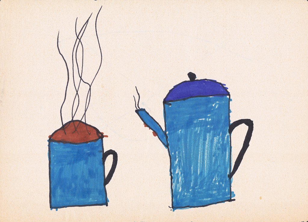 Kaffetasse und Kaffeekanne (Januar 1976, 8 Jahre)