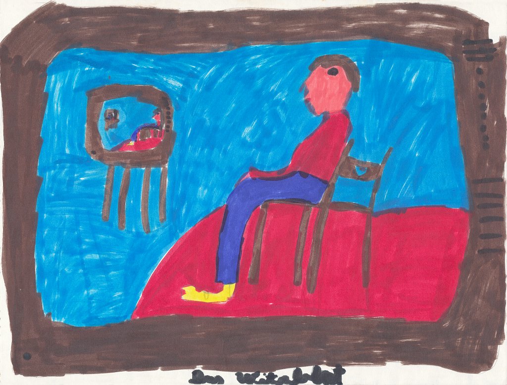 Ein Mensch, der sich im Fernsehen sieht, der sich im Fernsehen sieht, der sich im Fernsehen sieht, ... (undatiert, vielleicht 1976)