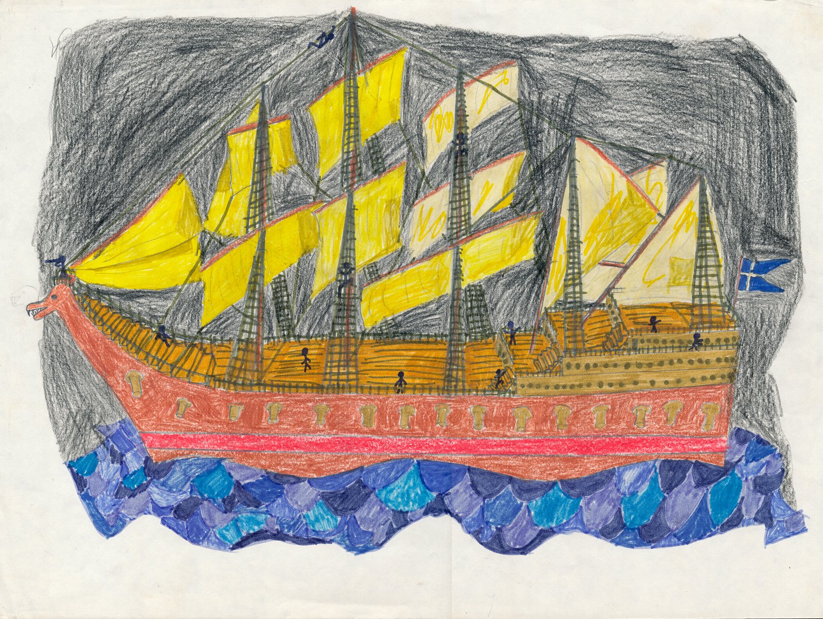 Piratenschiff mit 9 "Männeken" darauf, die alle irgendwas anderes machen. Vorlage war möglicherweise ein Spielzeug-Segelschiff (Bild undatiert; vielleicht von 1978)
