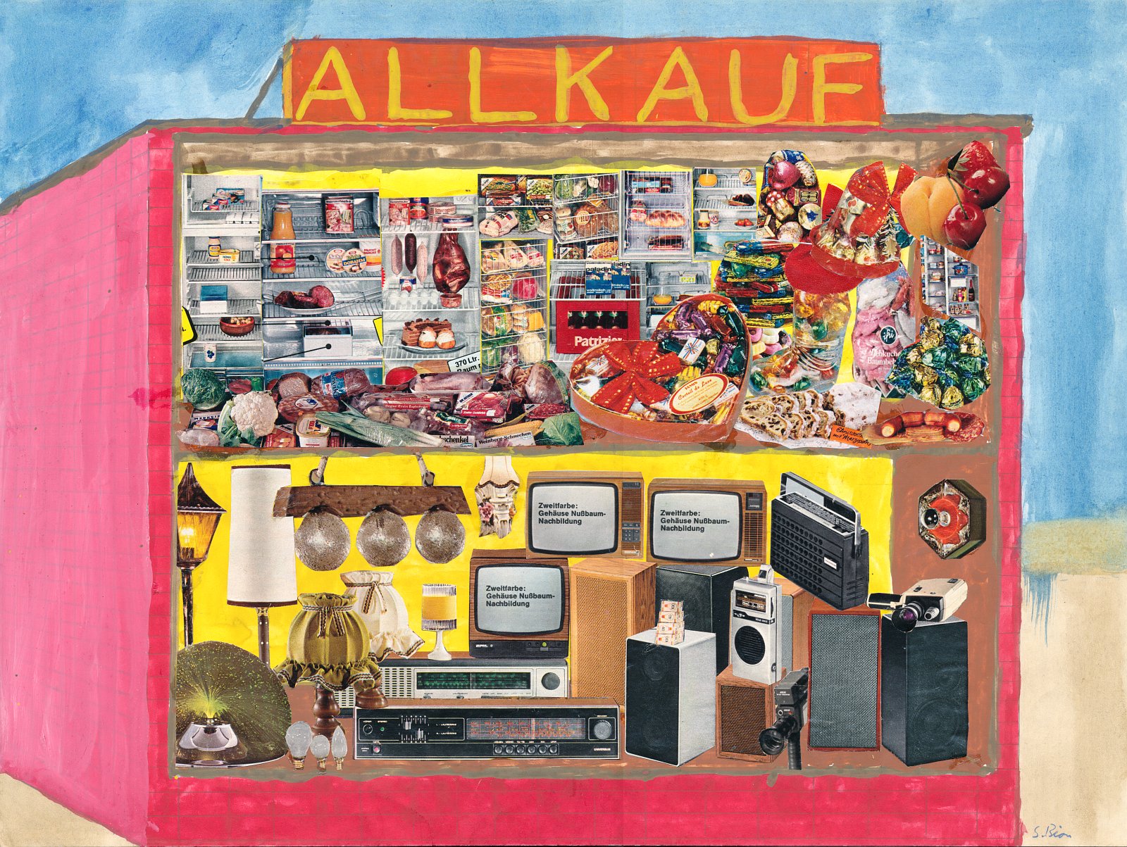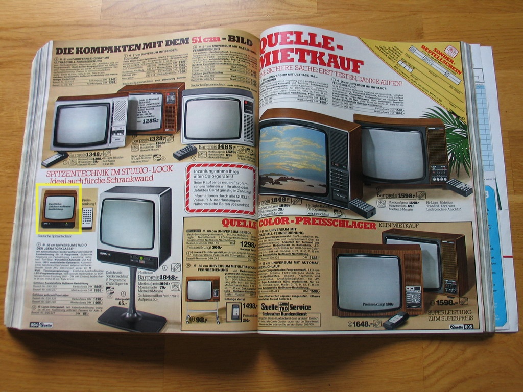 Der gelb umrandete Fernseher aus dem Quelle-Katalog vom Herbst/Winter 1978/1979 ist auf meiner Collage zu sehen.