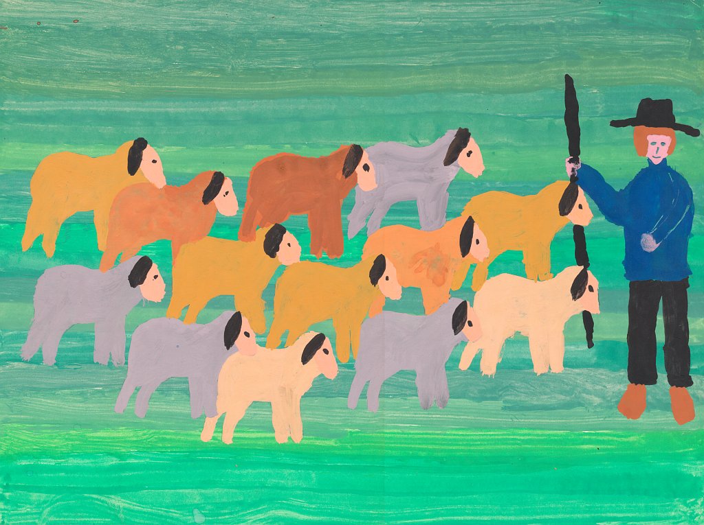 Schäfer mit Schafherde (undatiert; wahrscheinlich 1979/1980, 6. Schuljahr)