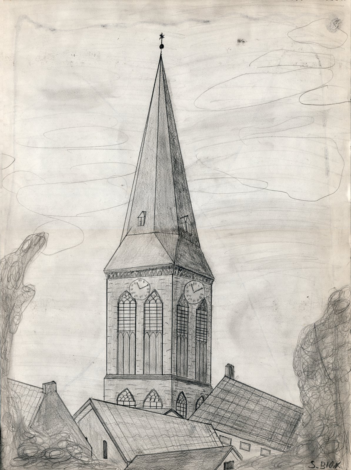 Die Kirche St. Clemens in Kaldenkirchen (Zeichnung von ca. 1980/1981).