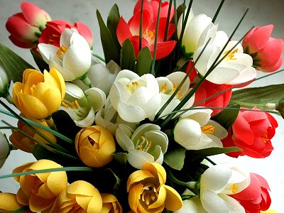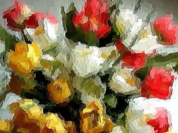 Hier habe ich ein Foto eines Plastikblumenstraußes mit dem Filter "Pinselstrich" bearbeitet.