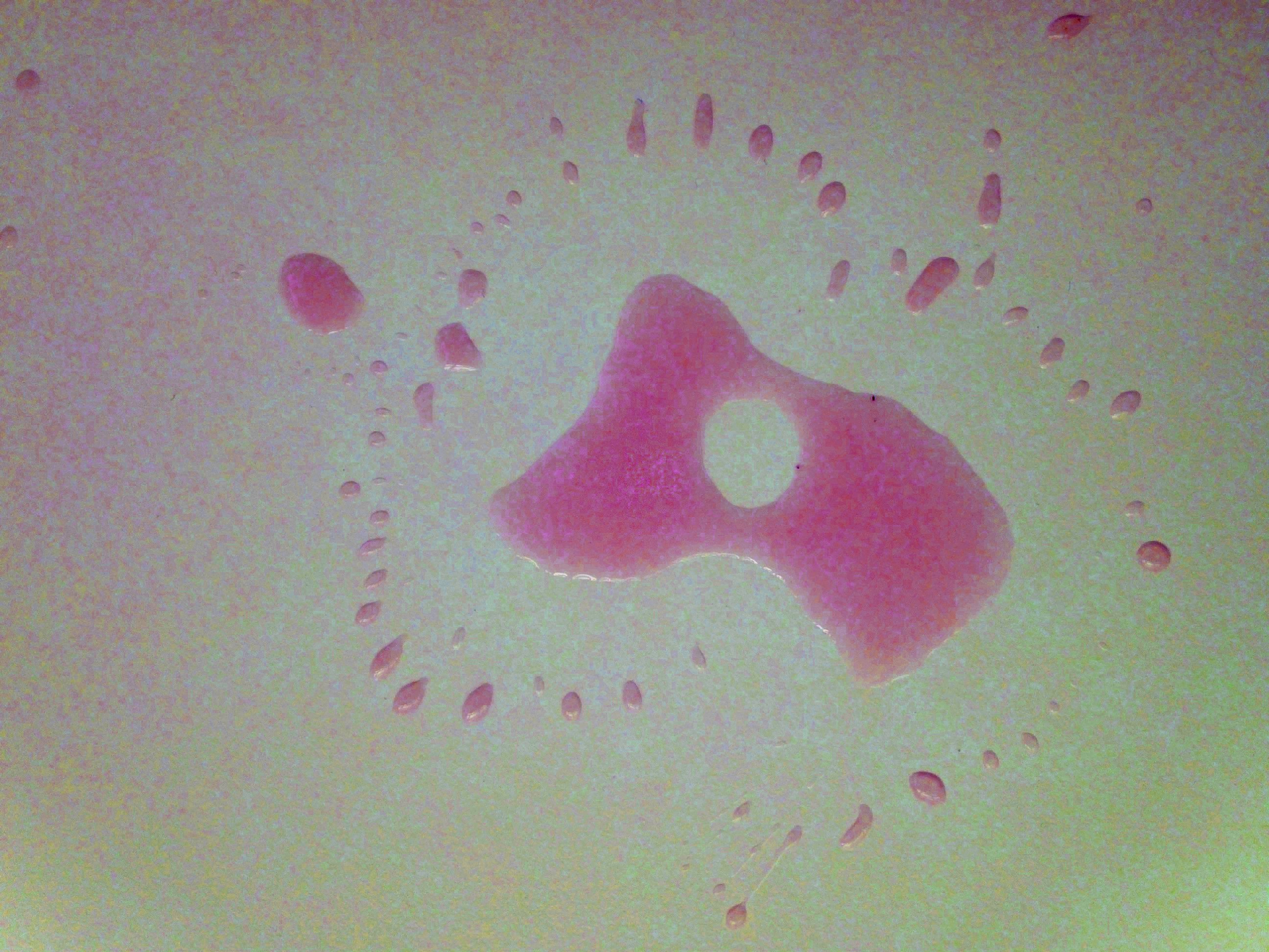 Was siehst du? Für mich sieht das aus wie ein ausgerutschtes Männeken. - Farbklecks-Pareidolie auf einem Gehweg in Haar (2023).