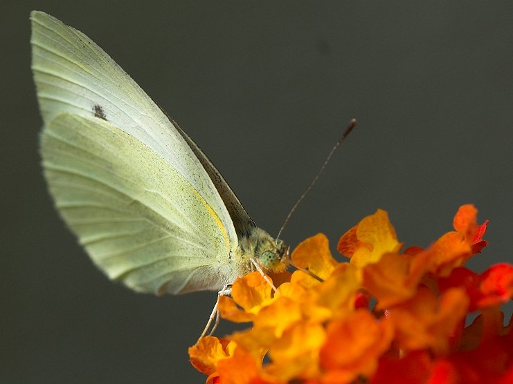 Ein "glupschäugiger" Großer Kohlweißling (Pieris brassicae) auf einer Blüte eines Wandelröschens.