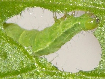 Im Sommer 2006 ließ sich die Raupe einer Gammaeule auf den Blättern einer Distelpflanze nieder, die ich in einem Topf ausgesät hatte. (Ich wollte mal eine blühende Distel auf meinem Balkon haben, doch daraus wurde nichts - wahrscheinlich falsche Standortbedingungen.) In rasender Geschwindigkeit wurden Löcher in die Blätter gefressen - immer systematisch Reihe für Reihe in kleinen "Bögen".