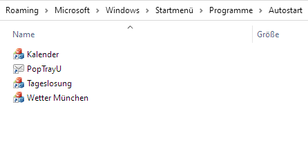 Damit das Fenster bei jeder Anmeldung automatisch angezeigt wird, kann im Autostart-Ordner eine Verknüpfung zu der Datei "HtmlWindow.exe" angelegt werden. Hierzu in der Adresszeile des Windows-Explorers shell:startup eingeben und Enter drücken. Dort hinein mit der rechten Maustaste die Datei "HtmlWindow.exe" ziehen, loslassen und aus dem Kontextmenü "Verknüpfungen hier erstellen" auswählen.