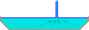Doch plausibel erschien mir diese Erklärung nicht, und so setzte ich diese Frage als "Rätselfrage" in ein Diskussionsforum. Dort brachte mich schließlich Ines auf die richtige Spur: Demnach kommt dieses auch unter dem Namen "Ice Spike" ("Eisnadel" - was für eine sinnige Bezeichnung...) bekannte Phänomen wohl dadurch zustande, daß das Wasser zuerst an der Oberfläche vom äußeren Rand des Gefäßes her nach innen zu frieren beginnt, bis nur noch ein kleines eisfreies Loch in der Mitte der Oberfläche übrig ist. Da sich Wasser während des Gefriervorgangs aufgrund seiner Dichteanomalie ausdehnt, tritt es in noch flüssiger Form aus dem Loch aus und gefriert dann außen, wo es einen "Krater" bildet, der immer höher wächst. In dem Bild von dem Eiszapfen ist auch deutlich ein "Kanal" zu sehen, durch den das Wasser nach oben aus der Spitze des Zapfens herausgedrückt wurde (wie bei einer hohlen Spritzen-Nadel).