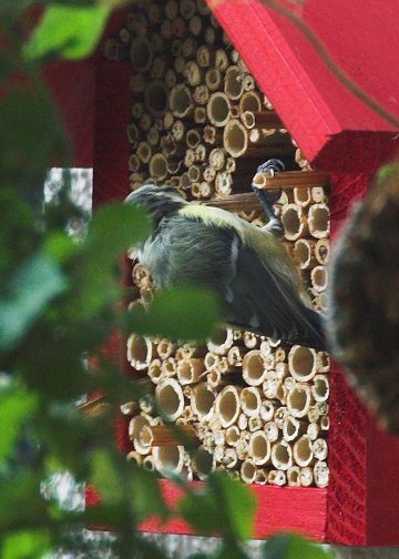Das rote "Insektenhotel" habe ich übrigens im August abgehängt, da die neugierigen Meisen ständig die hohlen Stengel herausgezupft haben, wohl auf der Suche nach den darin enthaltenen Insekten.