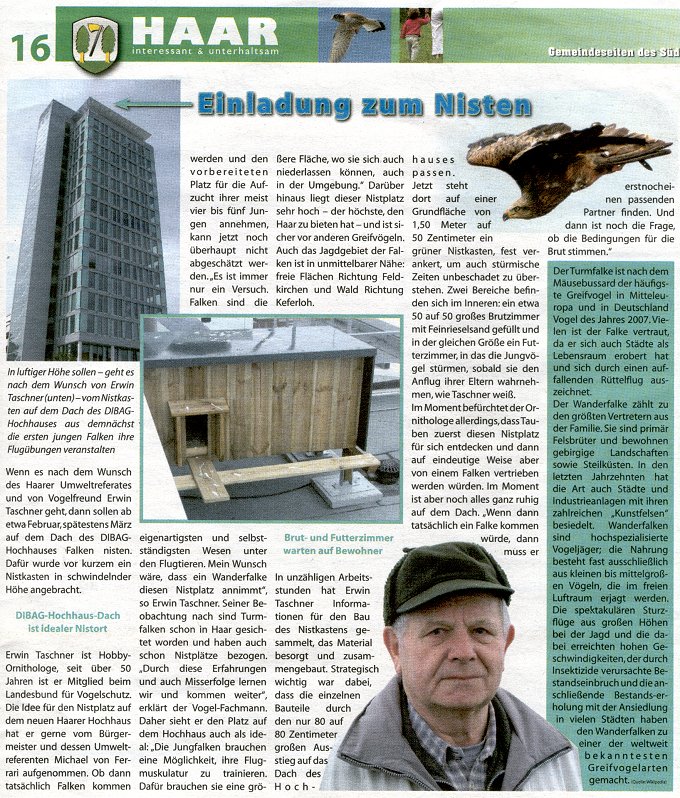Wenigstens wird man sich über die Turmfalken-Cam des LBV Kempten-Oberallgäu einen Eindruck davon verschaffen können, wie es in der Kinderstube der Falken von Haar aussehen wird - falls sich dort ein Pärchen einfindet...