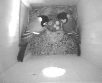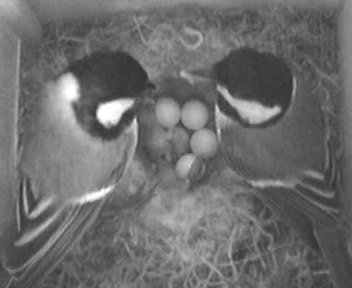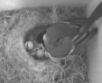 Aus den ehemals 8 Eiern sind im Laufe des vergangenen Wochenendes 5 Küken geschlüpft, aber schon Montag waren nur noch 2 davon da. 3 müssen also entweder "Totegburten" gewesen oder kurz nach dem Schlüpfen verendet sein - keine Ahnung.