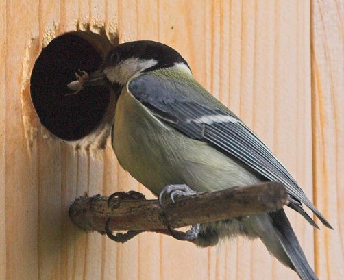 Auf dem folgende Video sieht man - falls das mit dem Hochladen nach YouTube klappt - wie sich beide Elternvögel an der Fütterung der Jungen beteiligen, die jedoch scheinbar Probleme haben, die Brocken zu schlucken. Das letzte Stück der Raupe wird daher wieder nach draußen abtransportiert und dort wahrscheinlich vom Papa vertilgt.