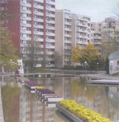 Bei dem so hochtrabend als "See" bezeichneten Gewässer handelt es sich übrigens um ein ca. 30 cm tiefes, mit Wasser gefülltes Betonbecken, das sich durch die in den 70er Jahren erbauten Hochhaus-Schluchten des südlichen Haar zieht: