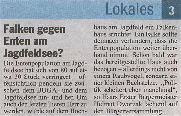 Jetzt ist mir auch klar, wozu das ganze dienen sollte: Um der - wie die örtliche CSU in ihrem Käseblatt schreibt - "Entenplage" Herr zu werden: