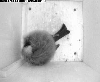 Seit Oktober 2009 hatte wieder eine Meise im Nistkasten ihr Nachtquartier bezogen.