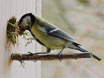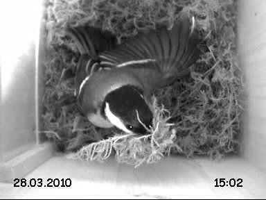 "Sonntag ist Ruhetag"? Bei Familie Kohlmeise nicht! Auch heute wurde natürlich ohne Rücksicht auf Arbeitszeiten den ganzen Tag über weiter am kuscheligen Nest gebaut, wie die folgenden Innen- und Außenaufnahmen beweisen: