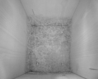 Leider konnte ich den Nestbau nicht weiter verfolgen, da ich nun einmal auch meine "Brötchen" verdienen muß. Als ich aber heute abend wiederkam, staunte ich nicht schlecht: Die Polsterschicht im Nistkasten war schon mehrere Zentimeter dick: