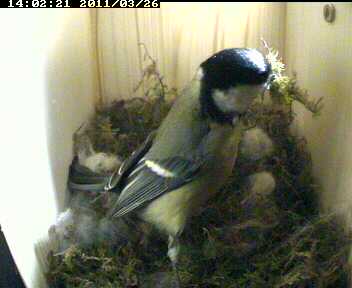 Nachdem das Nest in den letzten Tagen zunehmend an Höhe gewann, habe ich gestern die seitliche Kamera mal etwas nachjustiert - d.h. etwas weiter nach oben verschoben, was dank der Magnetbefestigung schnell erledigt war.