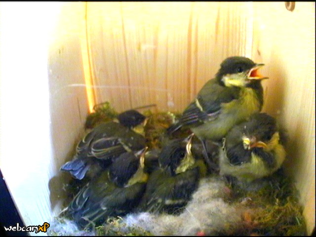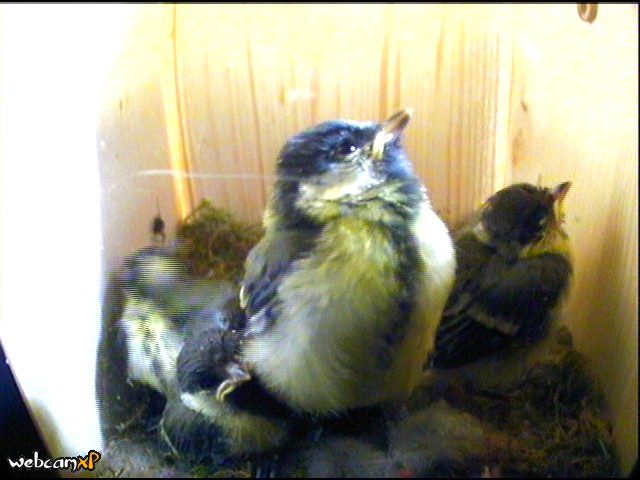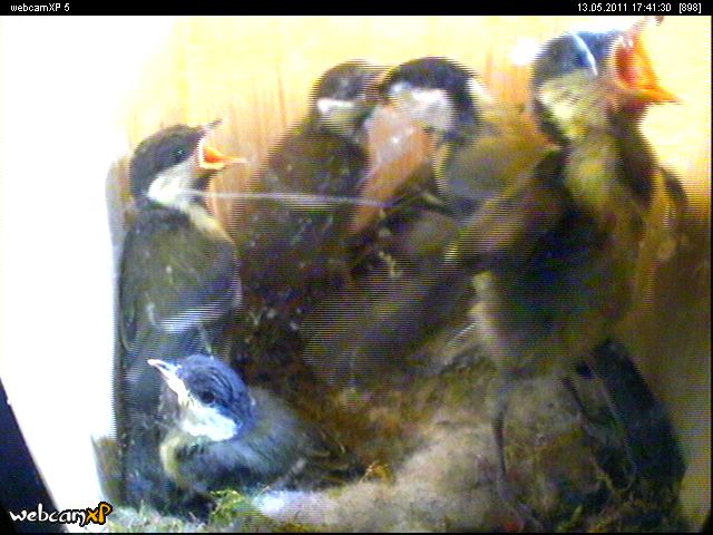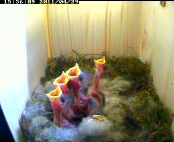 Am Sonntag, den 15. Mai 2011, sind 5 der Meisenküken in aller Frühe in die naßkalte Morgenluft entfleucht.