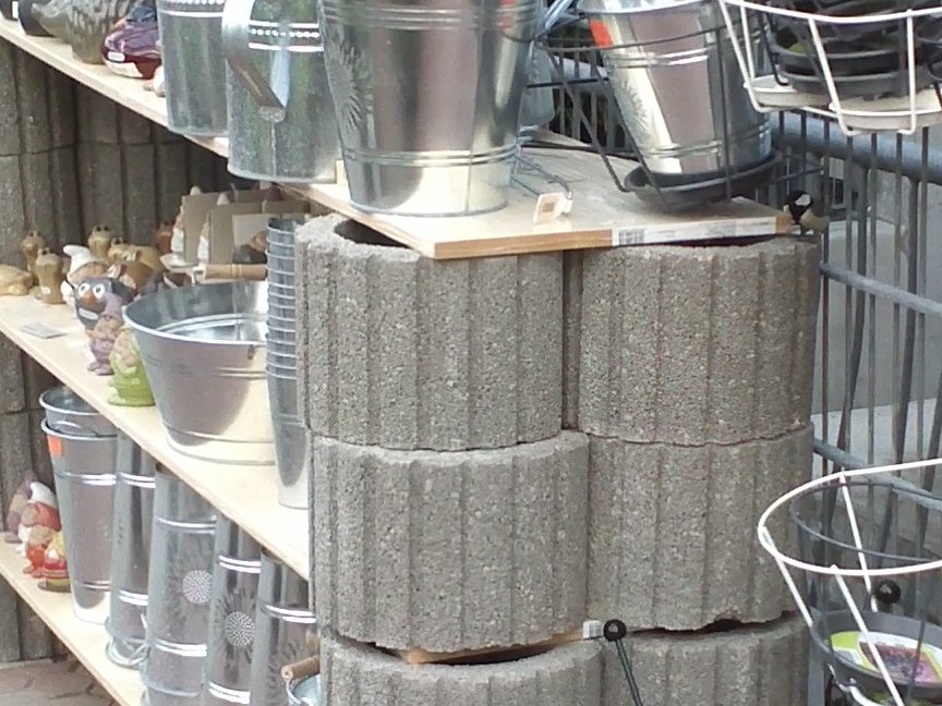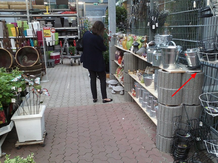 Beim Besuch des örtlichen Baumarkts hörte ich aus dem Hohlraum eines Steins, der als Regalstütze diente, das leise Fiepsen von Meisenküken. Offenbar hatte sich hier ein Kohlmeisen-Pärchen einen ungewöhnlichen Nistplatz ausgesucht. Das Regal befindet sich im Außenbereich des Baumarkts. Beide Eltern brachten im Minutentakt Futter herbei. Wenn Menschen der Nisthöhle zu nahe kamen, warteten die Eltern solange, bis die Luft rein war.