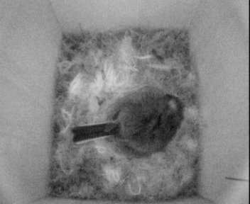Heute abend konnte ich im Nest drei Eier ausmachen. Leider wieder nur für den Bruchteil einer Sekunde, weil das Weibchen die ganze Zeit darüberhockte und sich nur ab und zu mal zum Kratzen zur Seite neigte, aber meistens zu wenig, um etwas sehen zu können.