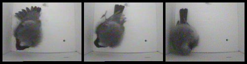 Schluß hört man, wie sie in den Nistkasten hopst. Dort sah sie sich zuerst um und flog dann in den
