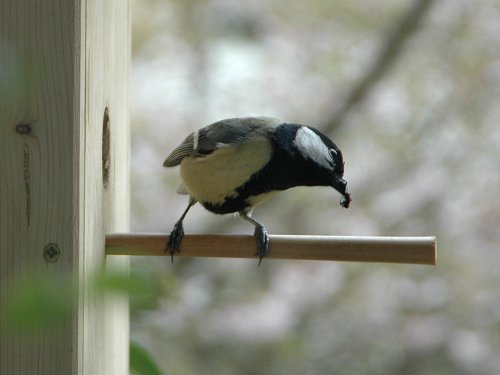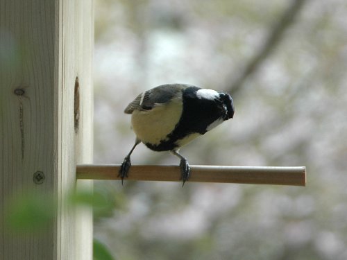 Heute hatte ich die Kamera in ca. 1,50 m zum Nistkasten aufgestellt und per Infrarotauslöser ausgelöst: