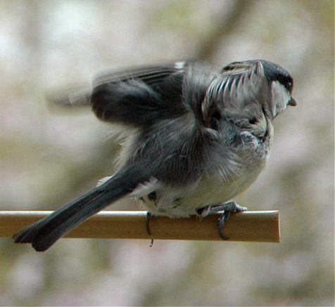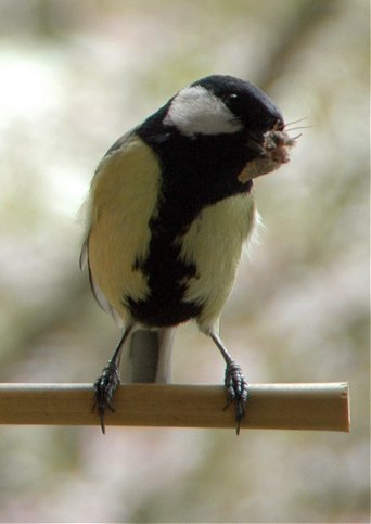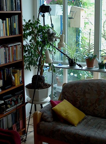 Jedesmal, wenn das Männchen mit Essen kommt, kündigt es sich dem Weibchen durch fröhliches Herumgeflöte an, das daraufhin manchmal auf ihren "Balkon" herauskommt und das Essen dort entgegennimmt (ich hoffe, mir gelingt davon noch ein besserer Schnappschuß). Es ist jedenfalls total niedlich, wie "er" "ihr" das Mitgebrachte vorsichtig hinhält und "sie" es dann ebenso vorsichtig entgegennimmt...