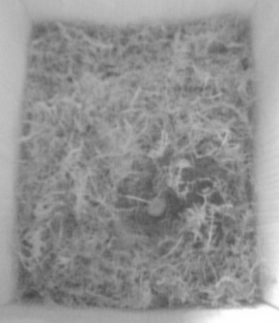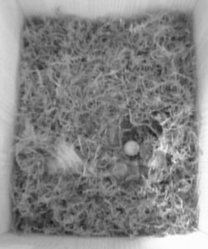 Etwa 2 Stunden später war das dann Ei zugedeckt, und es lag etwas Polstermaterial (das Helle da im linken unteren Viertel) im Nest: