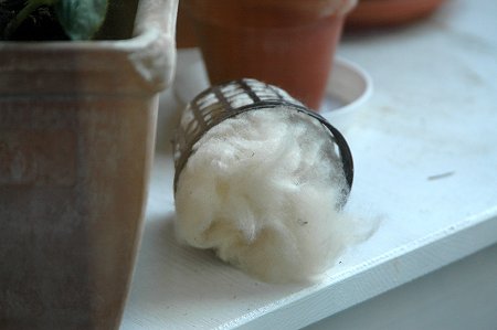 Anscheinend hatte sich das Weibchen des Kapoks bedient, den ich ihr am Tag zuvor ganz unauffällig hingestellt hatte (die Meisen entdecken aber auch alles...!):