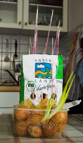 Mein Küchengemüse kommt übrigens ganz ohne Licht aus, wie ich heute beim Öffnen der Spülen-Schranktür festgestellt habe: