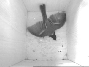 Auch die Meisen-Hennen können's wohl kaum noch erwarten und vollziehen schonmal "Trockenübungen" im Plattdrücken des wohl nur in ihrer Phantasie existierenden Nistmaterials: