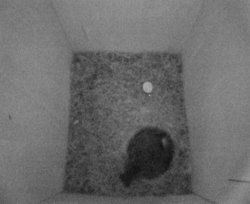 Am frühen Freitag morgen - das Weibchen schlief noch und draußen hatte es gerade begonnen zu dämmern - sah es so aus, als hätte das Weibchen während der Nacht ein Ei aus dem Nest geworfen. War sie der Meinung gewesen, es sei unbefruchtet und es würde daraus kein Küken mehr schlüpfen? Sehr ungewöhnlich...