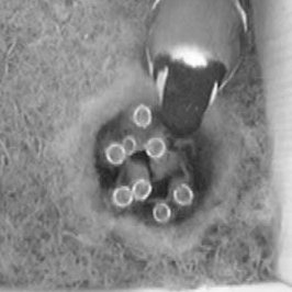 Etwas später am Morgen war das "Ei" aber weg. Ich vermute daher, daß es sich nur um die Hälfte der Schale eines Eies gehandelt hatte, aus dem in der Nacht das 8. und letzte Küken geschlüpft war.