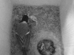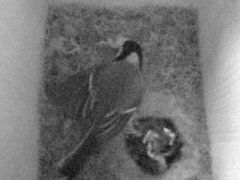 Später scheint das Weibchen zu versuchen, das inzwischen leblose Küken zu packen, um es hinauszutragen, was aber wohl nicht klappt. Seitdem liegt es immer noch dort, und vermutlich wird es da solange liegenbleiben, bis es mumifiziert ist. Zum Glück ist es nicht sehr warm...