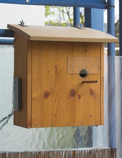 Der neue Nistkasten ist bezugsfertig.