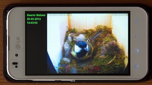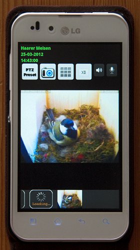 Leider bin ich bisher noch nicht dazu gekommen, eine für Mobilgeräte optimierte Version der Nistkasten-Seiten zu erstellen. Damit aber Meisen-Süchtige unterwegs keine Entzugserscheinungen bekommen, kann man sich das Live-Bild auch aufs Smartphone holen. Am besten eignen sich hierfür spezielle Webcam-Apps. Ich empfehle den "IP Cam Viewer", den es für Android, iOS und Blackberry gibt.
