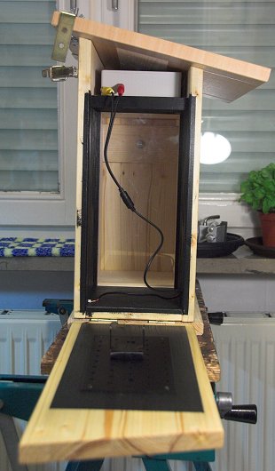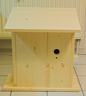 Auch frage ich mich, wie die Meisen auf die Glasplatte reagieren, in der sie sich vermutlich spiegeln werden, zumal der "Kameraraum" innen schwarz angemalt sein wird, um Reflexionen in der Glasplatte zu vermindern.