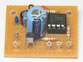 Bei dem Timer-IC sollte es sich im eine CMOS-Variante handeln (z.B. LMC555CN oder TLC555CP). Bei den bipolaren Typen (z.B. NE555, MC1455) würde sich mit dieser Beschaltung kein symmetrisches Taktverhältnis ergeben, da hier die Ausgangsspannung an Pin 3 um 1,4 V unter der Versorgungsspannung liegt, wodurch der Elko langsamer aufgeladen wird als entladen.