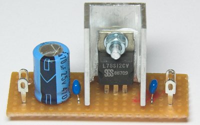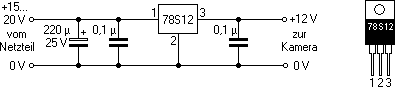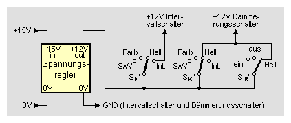 Die Stromversorgung von Dämmerungs- und Intervallschalter erfolgt über einen 12-Volt-Spannungsregler. Hierzu wird wie üblich ein Spannungsregler-Baustein 78S12 verwendet: