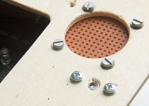 Im "Dachgeschoß" des Nistkastens links der "Anschlußkasten" und rechts das S/W-Kameramodul: