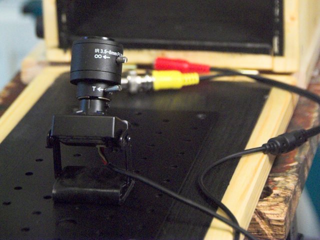 Zuerst habe ich die Kamera statt der Schwarzweiß-Kamera an den Vivotek-Videoserver angeschlossen. Dessen Einstellungen (Farbe, Helligkeit, Kontrast) sind normalerweise auf die Schwarzweiß-Kamera zugeschnitten. Leider ist es mir jedoch trotz Aktiviern der Farbe und Justieren von Helligkeit und Kontrast nicht gelungen, ein zufriedenstellendes Ergebnis zu erzielen. Auch habe ich keine Einstellung gefunden, um eine höhere Auflösung einzustellen. Vielleicht muß ich mich damit noch einmal etwas näher befassen...