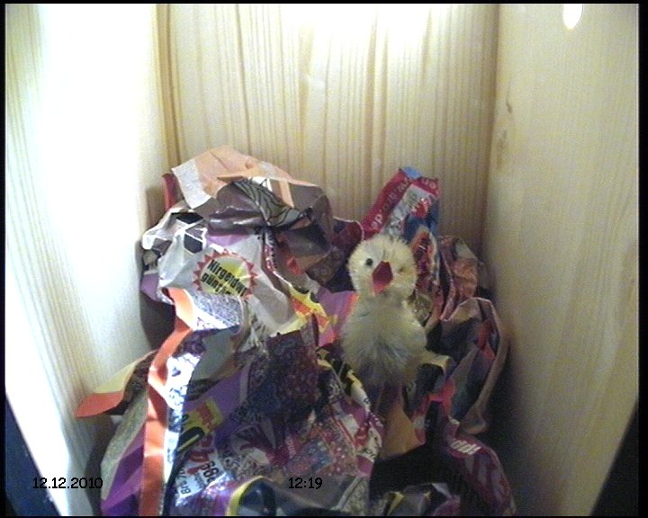 Als nächstes habe ich die Kamera an die TV-/Videokarte meines Rechners angeschlossen (Hauppauge WinTV PCI-FM) und erlebte die nächste negative Überraschung. Die Farben waren zwar besser (wenn auch immer noch etwas flau, was aber an dem wenigen Licht im Innern des Nistkastens liegen könnte). Allerdings ließ die Schärfe zu wünschen übrig - trotz eingestellter hoher Auflösung.