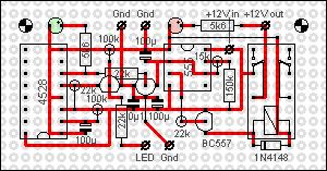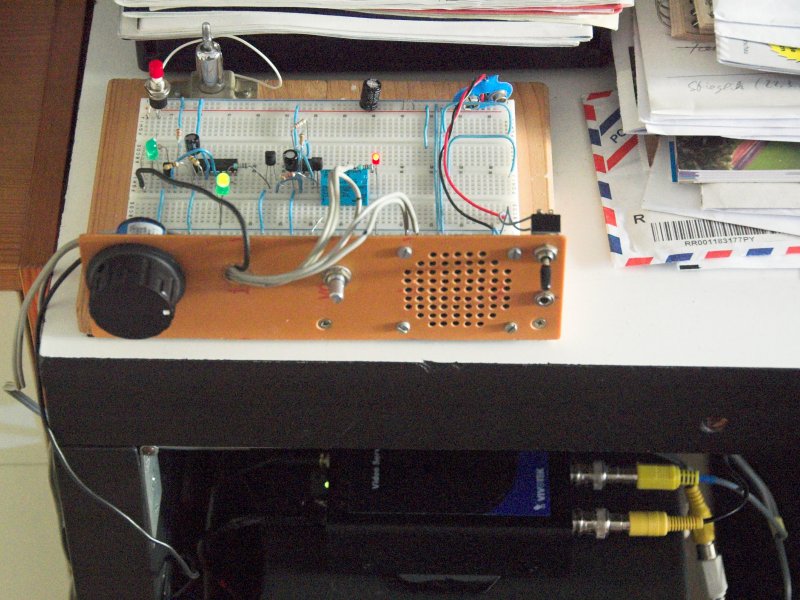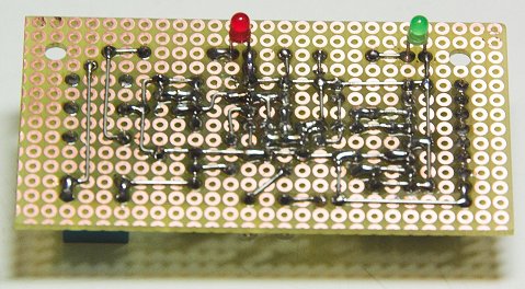 Nachdem ein zweitägiger Probebetrieb eines provisorischen Testaufbaus der Schaltung auf Steckplatine erfolgreich verlief – d.h. "Hänger" des Videoservers wurden erkannt und dieser kurz darauf neu gestartet –, erfolgte der endgültige Aufbau der Schaltung wie üblich auf Lochrasterplatte: