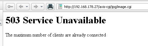 Sporadisch kein Zugriff auf das Kamerabild möglich (HTTP-Fehler: 503 Service Unavailable).