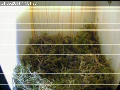 Zur Ausgabe des Webcam-Bildes auf der Webseite verwende ich daher ein serverseitiges Perl-Script, das das vom Videoserver gelieferte Originalbild (768 × 576 Pixel) verkleinert und dann ausgibt. Das Resultat ist ein merklich detailreicheres Bild, erkennbar z.B. an den feinen Härchen des weißen Polstermaterials im Nest unten links. Außerdem fügt dieses Script noch einen eigenen Zeitstempel und einen Zuschauerzähler in das Bild ein, da mir der vom Videoserver eingeblendete Zeitstempel zu viel vom Bild überdeckt hatte und zudem oft falsch ist (s.u.). Leider ist dieser Zeitstempel nicht in den per FTP hochgeladenen Bildern für die Galerie enthalten, aber vielleicht bastle ich mir hierfür auch noch etwas (Stichwort HTTP-Upload).