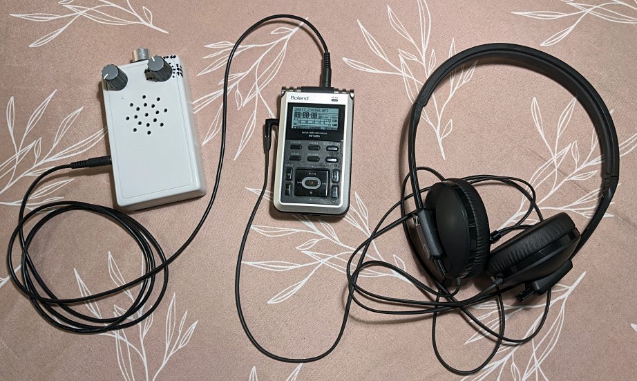 Anfang der Woche (Brückentag + Feiertag) radelte ich nachts in den nahegelegenen Riemer Park, um auf akustische "Pirsch" zu gehen. Das Gerätchen hatte ich an einen Audiorecorder angeschlossen und lauschte über Kopfhörer in eine normalerweise unhörbare Welt hinein. Schon krass, wie "laut" die Natur im Ultraschall-Bereich ist, während mit bloßem Ohr absolut nichts zu hören ist! Auf freien Feld mit Gras tat sich nicht viel, aber sobald ich mich Büschen oder Bäumen näherte, stieg der "Lärmpegel" merklich an. Dabei sind die unterschiedlichsten Geräusche zu hören: