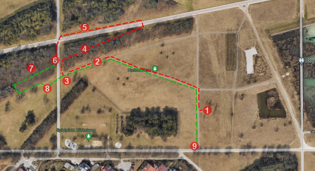 Die folgende Karte zeigt meinen Weg durch einen Teil des Parks. Die einzelnen Aufnahmeorte sind mit Nummern gekennzeichnet: